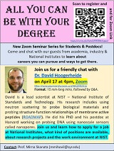 Join us and learn how to apply for a job at National Institutes, what kind of positions are available, about research projects and the work environment at NIST.